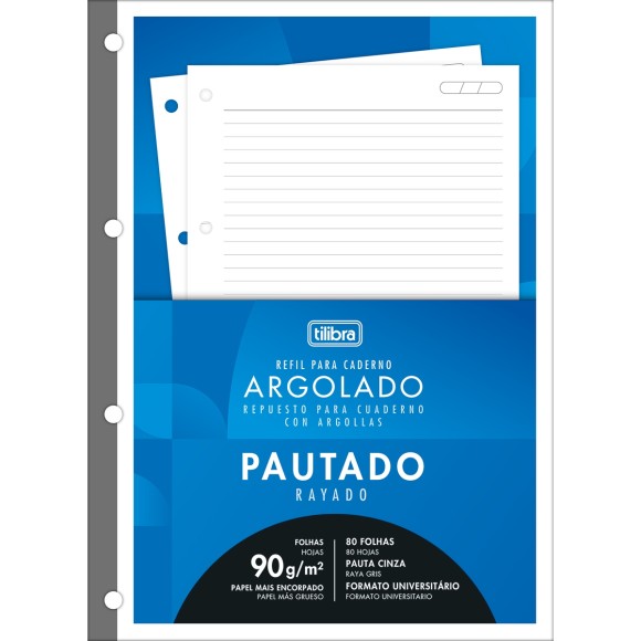 O Refil Tiliflex para Caderno Argolado Universitário Académie 80 Folhas 90 Gramas possui folhas pautadas coladas. Ideal para o dia a dia na escola ou na faculdade.