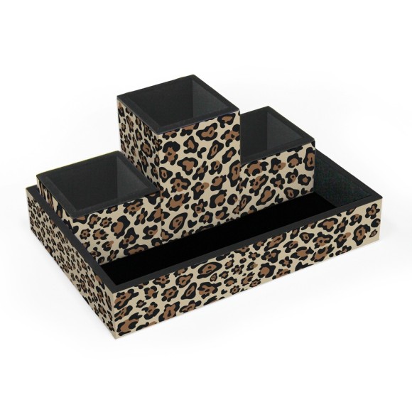 Para deixar sua mesa arrumada e linda! Organizador de mesa em MDF revestido com as nossas lindas estampas e com acabamento interno em material aveludado. Contém uma bandeja na medida 23,0 comp. x 16,0 larg. x 4,0 cm alt., 2 porta-clips medidas 7,0 comp. x 7,0 larg. x 5,0 cm alt. e 1 porta-lápis medidas 7,0 comp. x 7,0 larg. x 10 cm alt.
