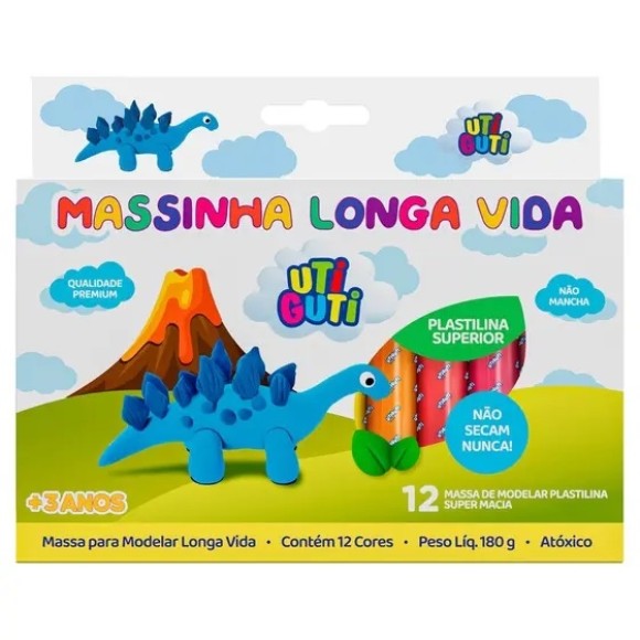 MASSINHA LONGA VIDA PLASTILINA 12 CORES 180G UTI GUTI