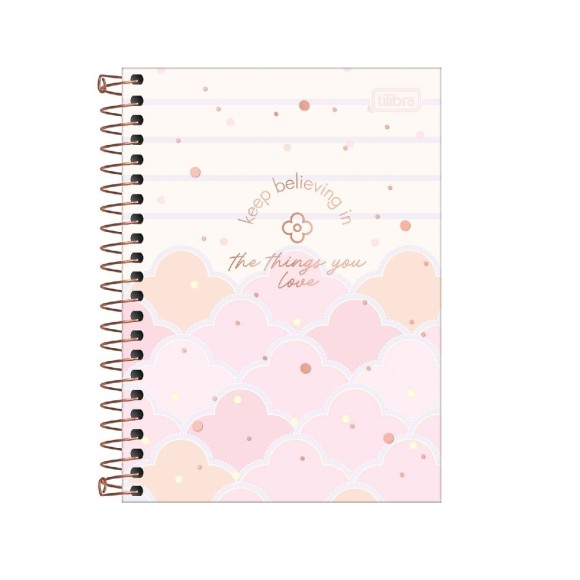 A Caderneta Espiral Capa Dura 1/8 Soho 80 Folhas possui capa dura com detalhe metalizado, parte interna decorada, folhas pautadas decoradas e espiral colorido. Ideal para o dia a dia.