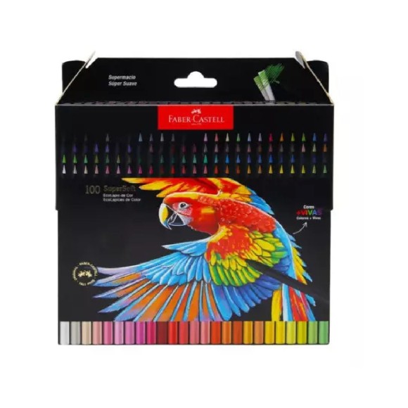 O Ecolápis de Cor Faber-Castell SuperSoft possui a exclusiva mina supermacia, que garante o máximo de conforto ao pintar. O estojo contém 100 cores mais vivas com excelente cobertura, sobre papéis claros e escuros. Além disso, a embalagem é reutilizável e 100% reciclável. Produzido com madeira 100% reflorestada e certificada pelo FSC: respeito ao meio ambiente.