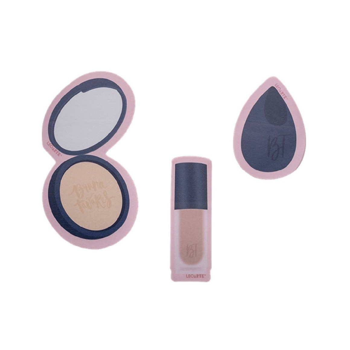 São 3 unidades de blocos coloridos, com formatos e estampas diferentes: 1 de pó compacto facial, 1 de batom e 1 de esponjinha de maquiagem, todos lindos e delicados.