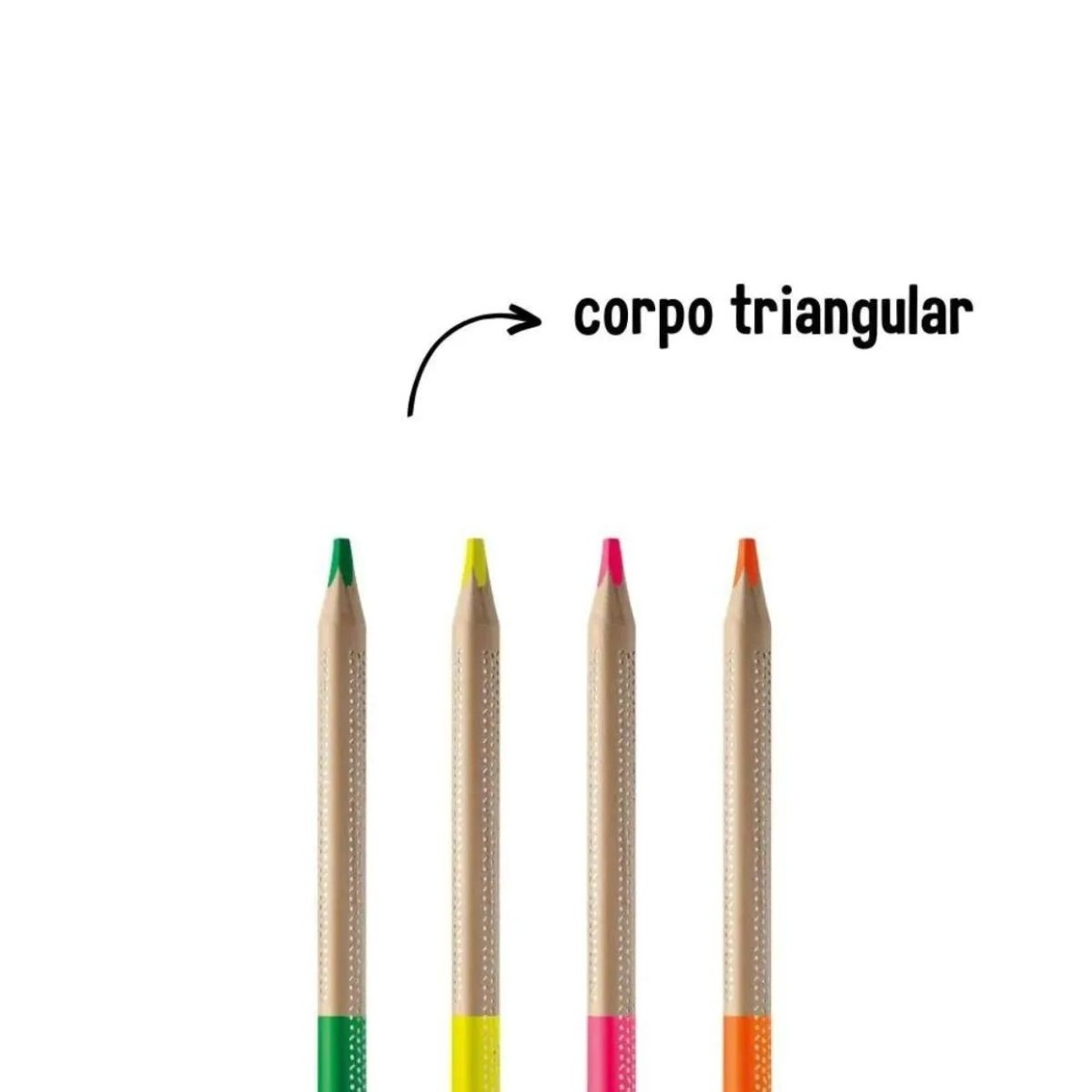 O lápis marca texto Fluo possui mina macia em cores super neon! São 4 cores para marcar ou pintar sem passar para o outro lado da folha, sendo ideal para uso em bíblias e papéis finos. Com corpo e ponta triangular jumbo, seu uso é super ergonômico.