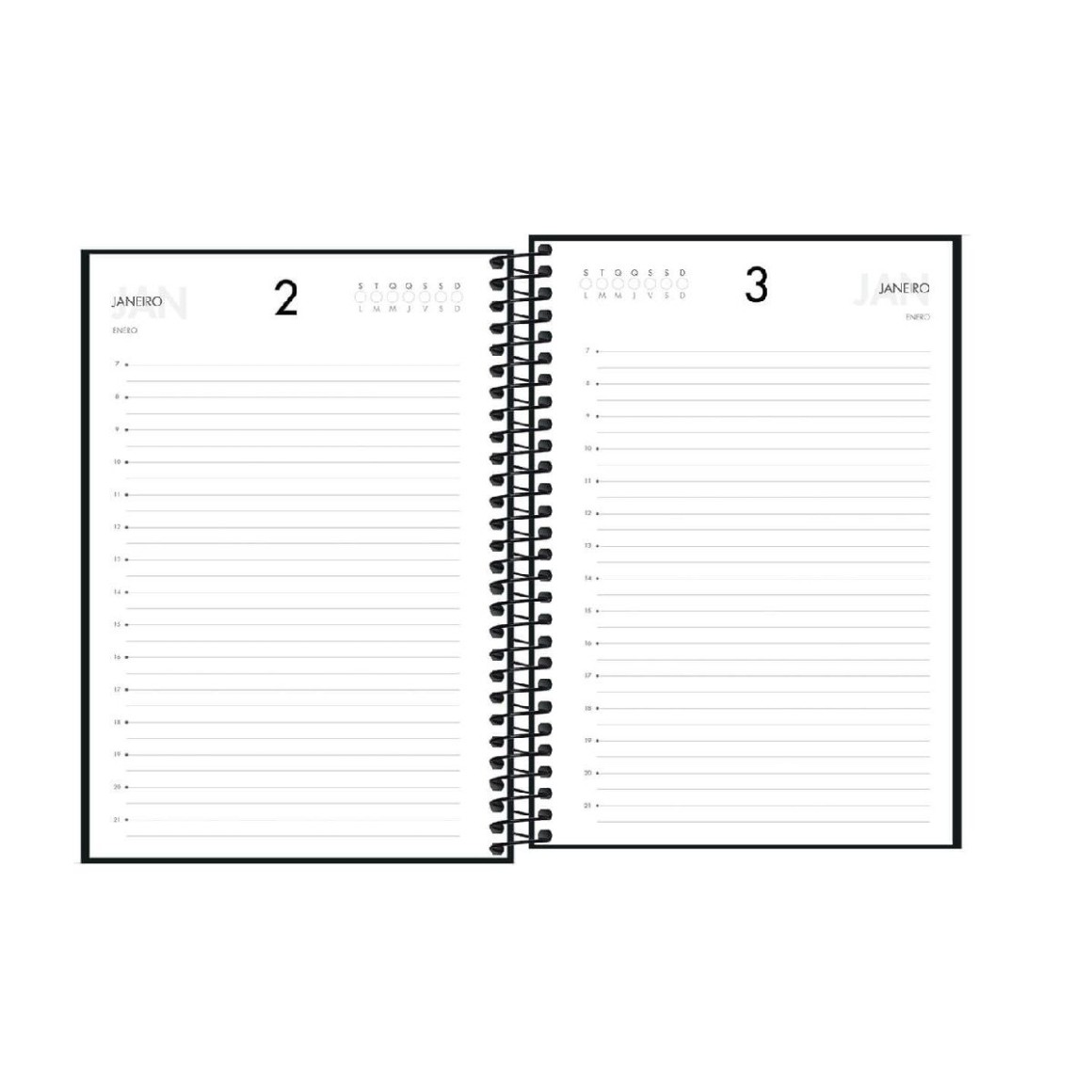 A Agenda Executiva Espiral Diária 12,9 x 18,7 cm Napoli Permanente tem visão permanente, 1 dia por página.