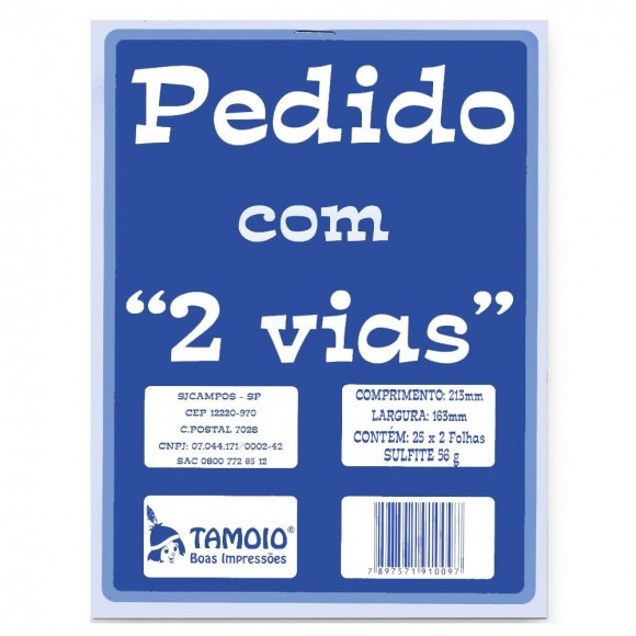 BLOCO TALÃO DE PEDIDO C/ 2 VIAS 25X2 FOLHAS 163X213MM TAMOIO