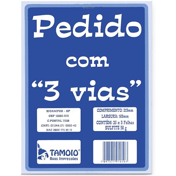 BLOCO TALÃO DE PEDIDO C/ 3 VIAS 25X3 FOLHAS 163X213MM TAMOIO