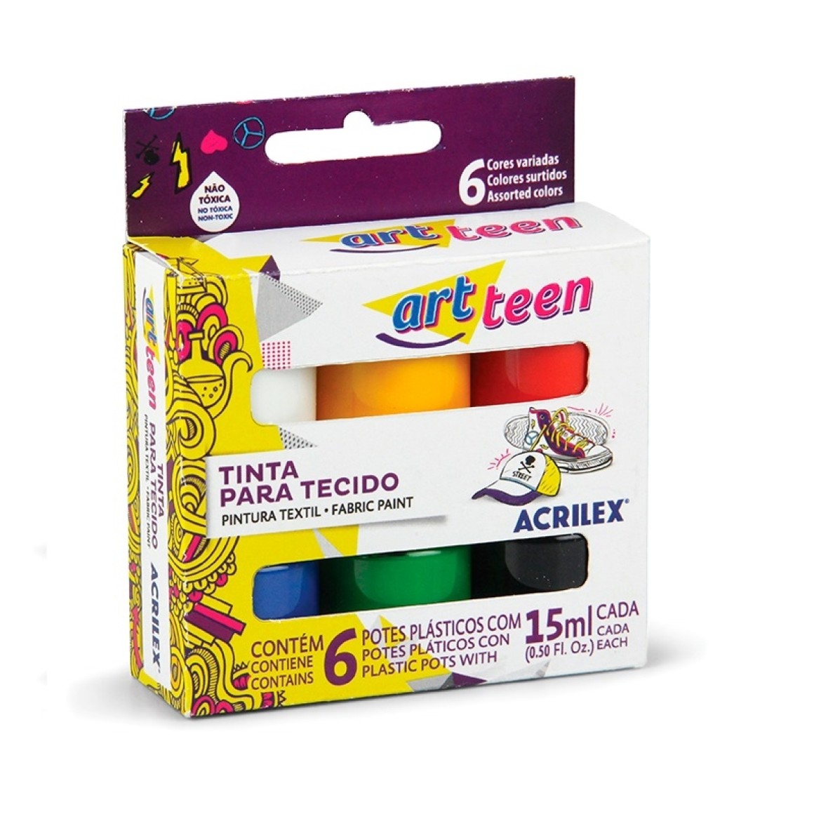 TINTA PARA TECIDO 6 CORES 15ML ART TEEN ACRILEX