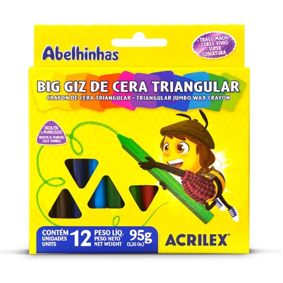 Giz de Cera Big Triangular 12 Cores 95g Acrilex