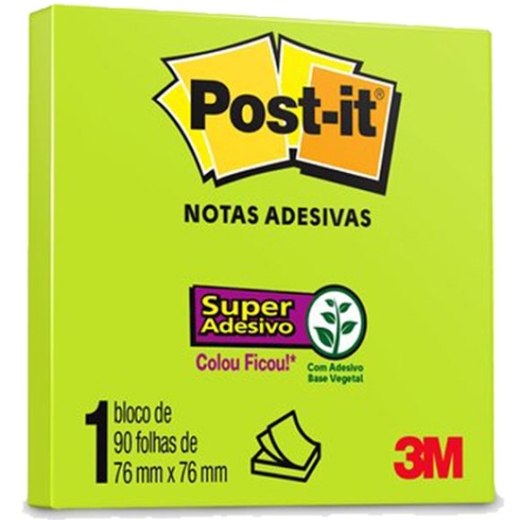 Bloco de notas super adesivas, possuindo 2x mais adesão do que o bloco Post-it® original. Ideal para colar em superfícies verticais.