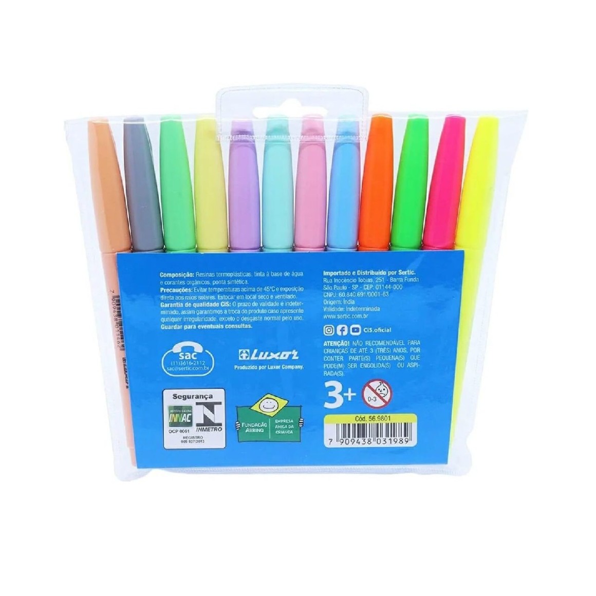 MARCA TEXTO LUMINI CIS COM 12 UNID 5 NEON + 7 PASTEL