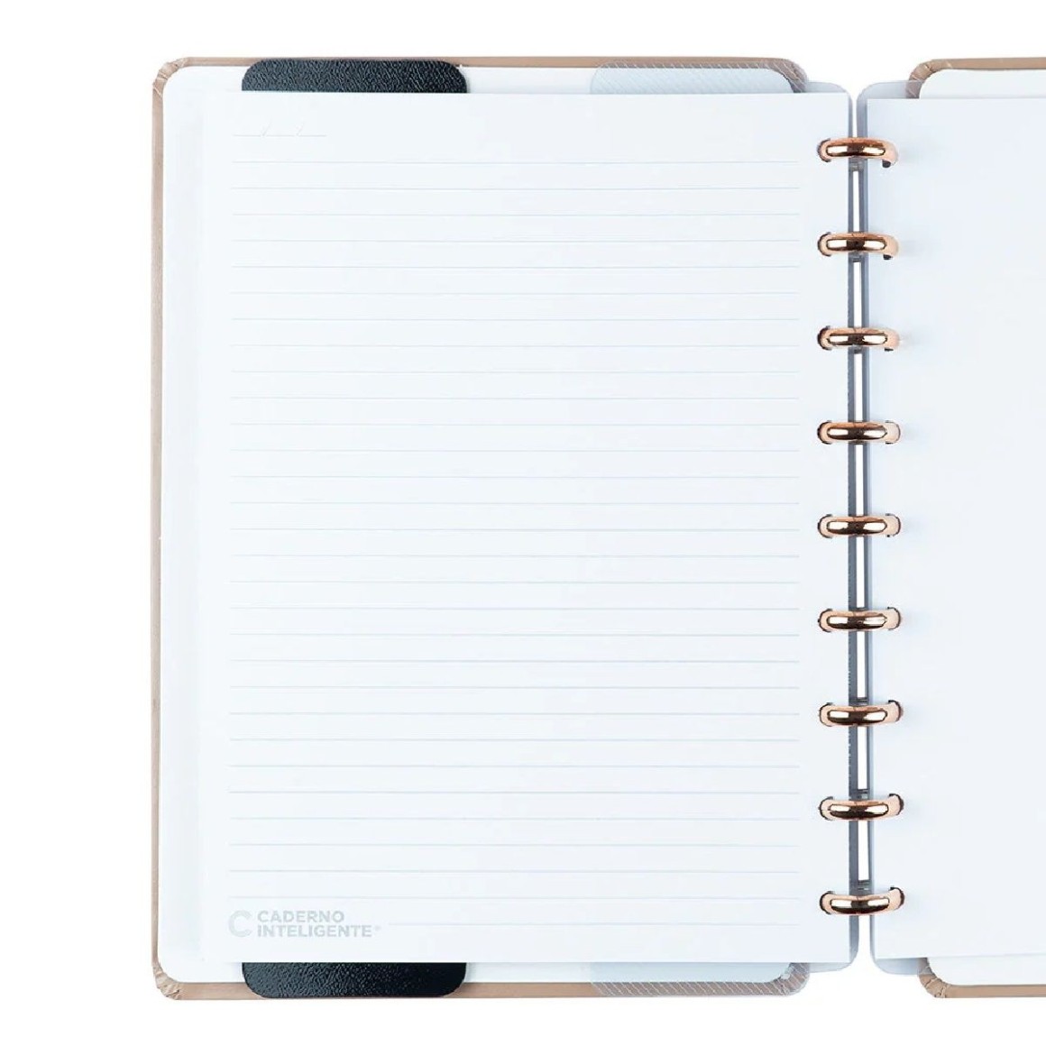 Com um design moderno e minimalista, o Caderno Cappuccino é a escolha ideal para te ajudar na organização da rotina do seu dia a dia. Com o sistema de discos inteligentes, você tem a liberdade para reposicionar, adicionar e retirar as folhas conforme a sua necessidade.