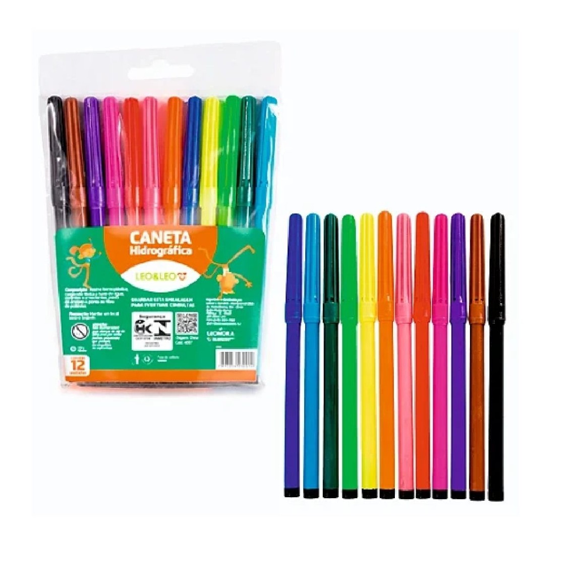 CANETA HIDROGRÁFICA 12 CORES LEO&LEO